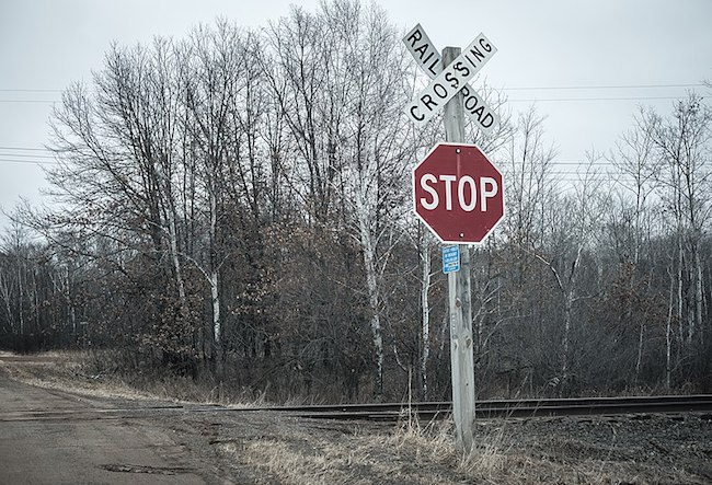 Image of Minnesota railroad crossing by Sharon Mollerus [CC BY 2.0]