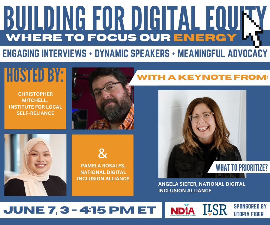 Co-hosted by NDIA Training & Community Engagement Manager Pamela Rosales and ILSR’s Community Broadband Networks Director Christopher Mitchell, the 75-minute online webinar brings together a variety of front-line experts and digital inclusion practitioners who will share focused, concise lessons-learned and best-practices relevant for those working in both rural communities and urban centers.