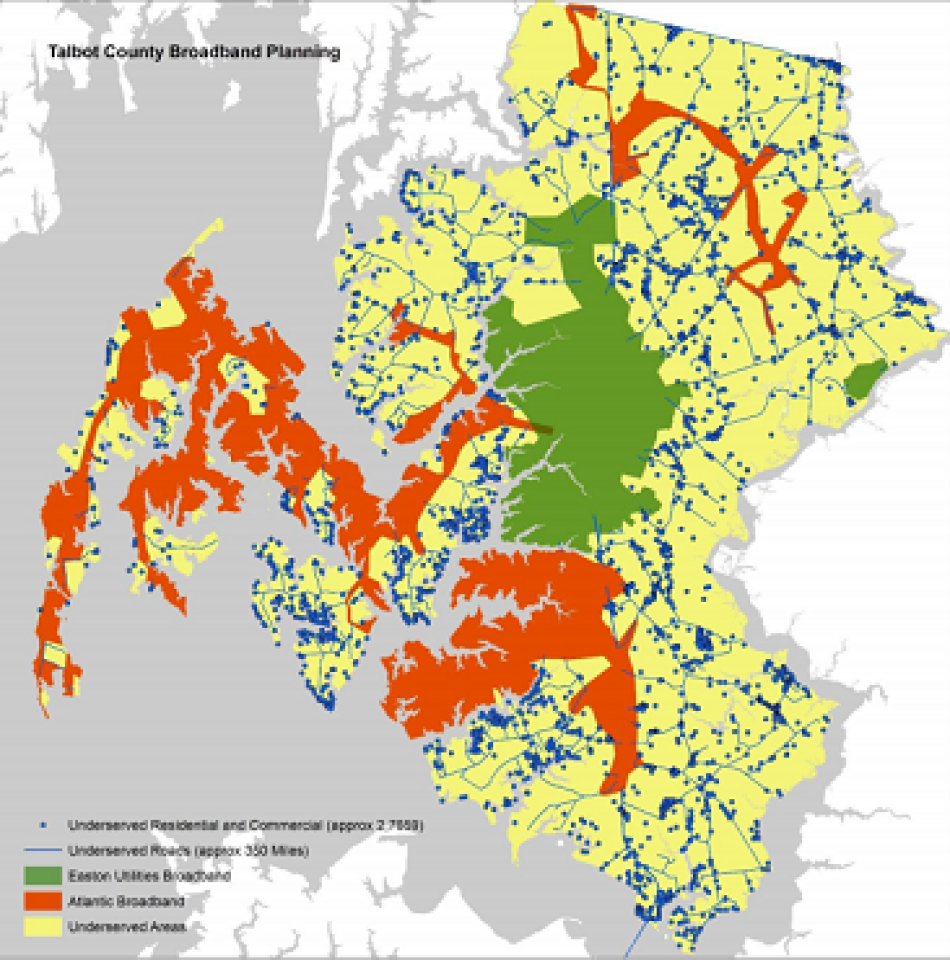 Hundreds of thousands of Maryland residents [pdf] currently lack fixed broadband connections, with one in five in the state’s rural areas. It’s a problem that local governments have been trying to fix for years; Talbot County (pictured to the right), in Choptank's service area, issued an RFI in 2017 [pdf] to no avail. Carroll County has been expanding connectivity recently through its middle mile network, and Garrett County has been doing the same through an economic development initiative.