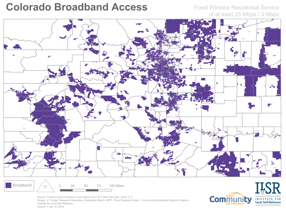 The Rocky Mountains are beautiful, but they make Internet access difficult -- that’s the long and short of our research on Colorado. While community networks are making some headway in providing much needed connectivity, much of the state still may only have access to fixed wireless or Satellite service.