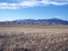 The San Luis Valley in Colorado is the headwaters of the Rio Grande and a high-altitude basin in south central Colorado. There are more than 8,000 square miles within the Valley, but only about half of that is privately owned. The Rio Grande National Forest and the Great Sand Dunes National Park and Preserve cover large swaths of land that attracts naturalists and people looking for outdoor adventure. Tourists also come to the Valley to enjoy the hot springs. The area was once populated with the Ute Native Americans; Mexican settlers have also played a part in populating the region. Mountain ranges bound the Valley on the west and east sides, luring climbers and campers. Alamosa is the most populous community as the county seat with a little under 10,000 people; Adams State University is located there.