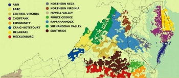 Map of electric cooperatives in Virginia courtesy of VirginiaPlaces.org via Creative Commons Attribution-Share Alike 4.0 International