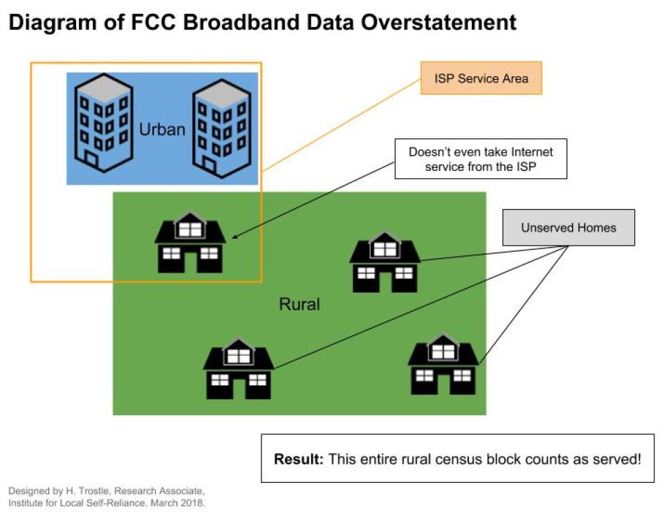 These grant programs mainly rely on the FCC’s Form 477 to determine the locations of the biggest disparities in broadband access. This data has significant limitations. It is self-reported by the ISPs and reported twice a year. It also likely overstates the availability of broadband. An entire census block (the unit of measurement for the Form 477) may be counted as having broadband access if an ISP claims it can offer service to one resident there.