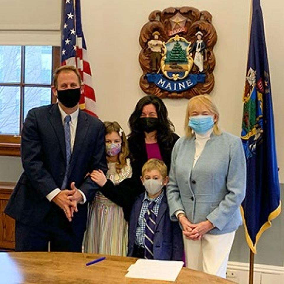 Inline image of Andrew Butcher swearing-in ceremony courtesy of Gov. Mills office. No copyright infringement is intended