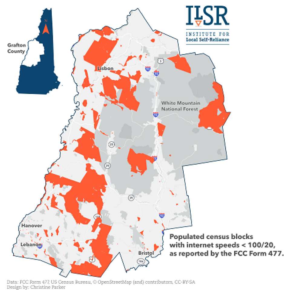 The federal government’s failure to develop accurate broadband mapping data has forced countless communities to take the matter into their own hands. Counties like Grafton have resorted to conducting independent surveys, crowdsourcing better data, relying on third party speed test data, or even driving town to town to determine real-world availability and speeds.