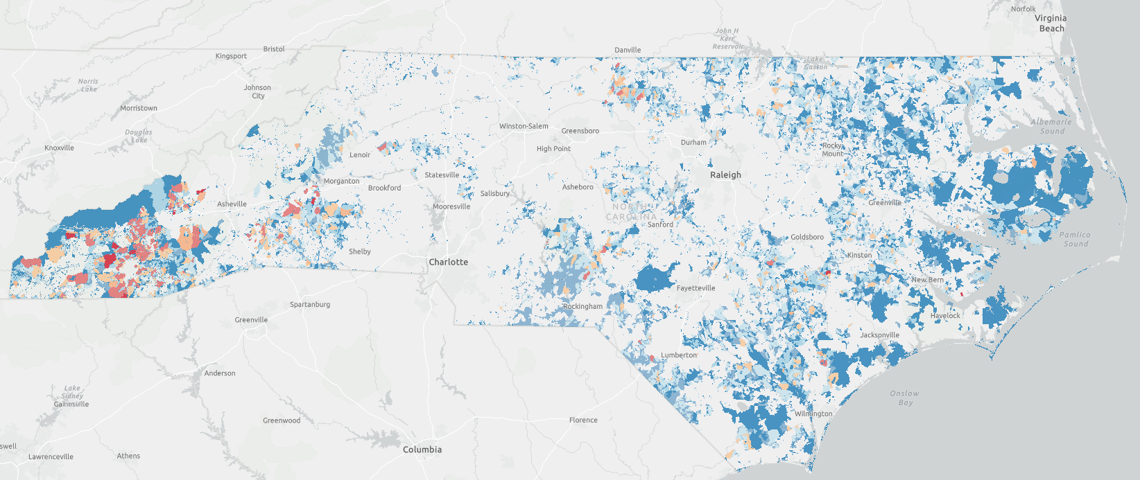 The GREAT Program was initiated in 2018, and aims to bring Internet access to a host of counties that the state has defined as the most economically distressed. Nearly half of the 100 counties in the state are designated as Tier 1 [pdf], or the most in need. The system has been in place since 2007, and determinations are based on median household income, unemployment rates, demographic changes, and property taxes. A number of counties — including Duplin, Rockingham, and Nash — were moved from the Tier 2 to the Tier 1 designation in the last year.