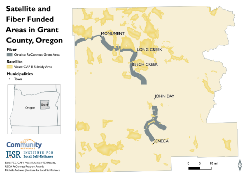 Grant County, Oregon, is already feeling the impact of Viasat’s subsidies on local broadband efforts. For a recently awarded ReConnect grant, the county and private partner Oregon Telephone Corporation had to carefully design their fiber network around areas that Viasat won in the CAF II auction. “We have really bizzare zones of exclusion,” Green shared. “Some of the area that was auctioned off looks like swiss cheese going through our county.”