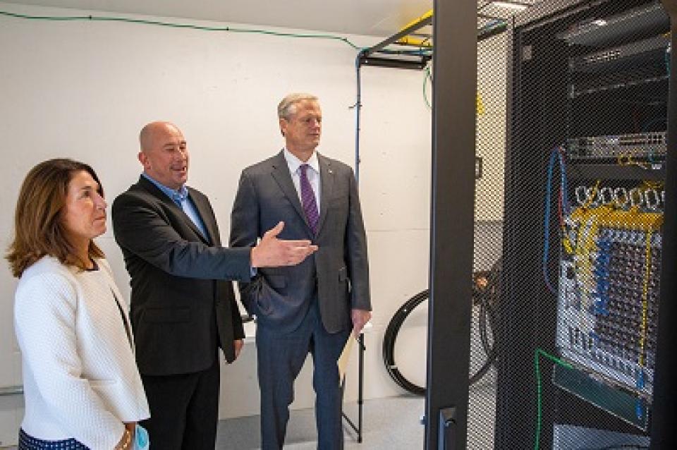 Inline image of Massachusetts Gov. Charlie Baker looking at installation of the municipal network in Becket, MA, courtesy of Joshua Qualls/Governor’s Press Office, Attribution-NonCommercial-ShareAlike 2.0 Generic (CC BY-NC-SA 2.0)