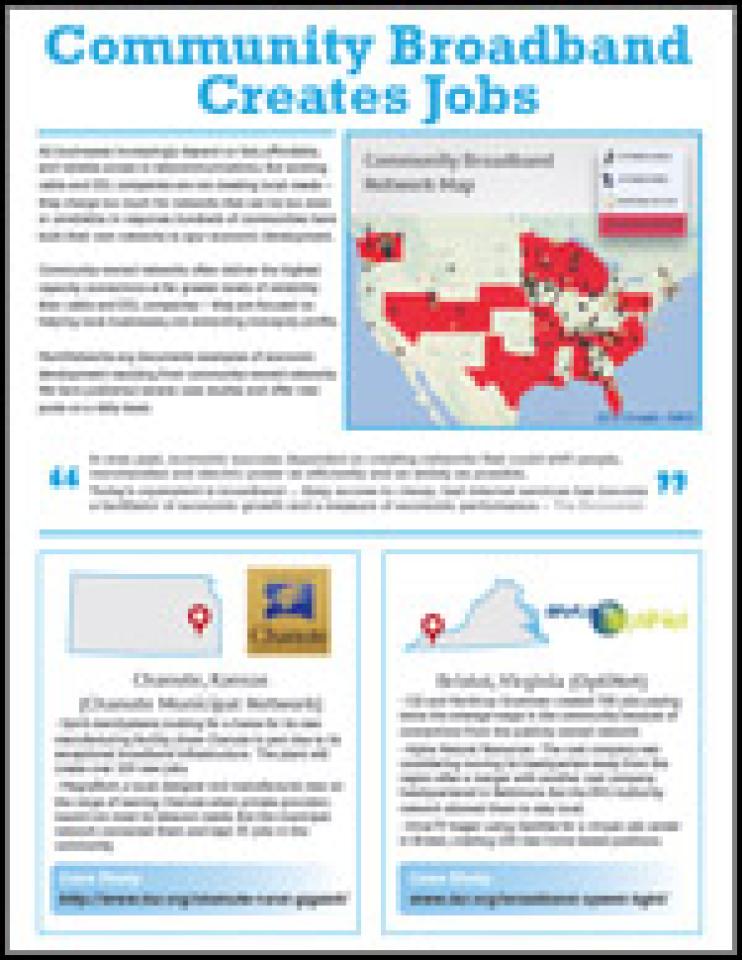 Community Broadband Networks have a very good track record in creating jobs. This fact sheet details where publicly owned network attracted new businesses or helped existing businesses to thrive.