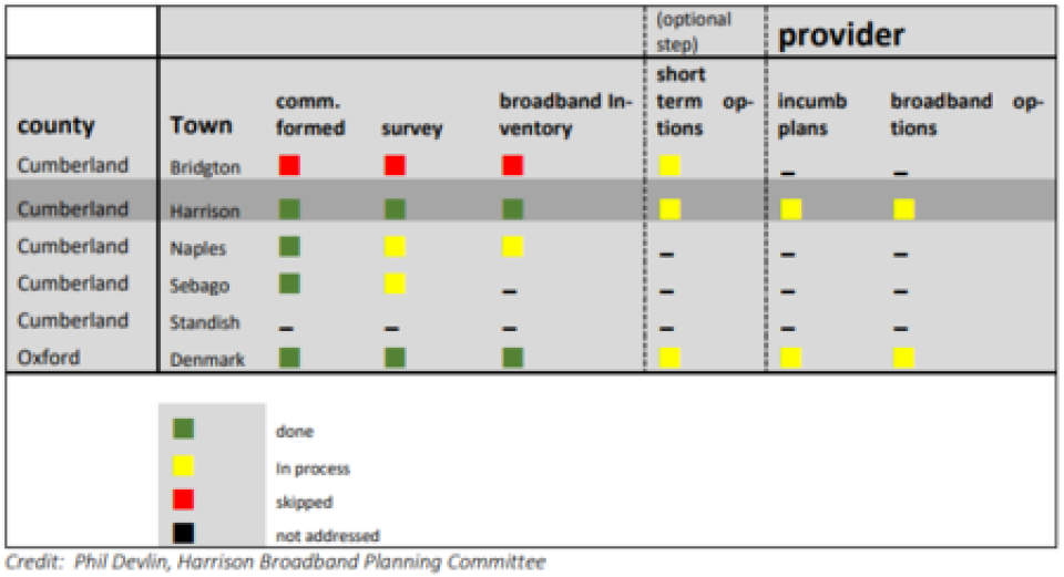 Upon embarking on individual, citywide approaches to improve Internet access, the towns of Bridgton, Denmark, Fryeburg, Harrison, Naples, Raymond, Sebago and Standish recognized that a regional approach would improve efficiency and speed efforts.